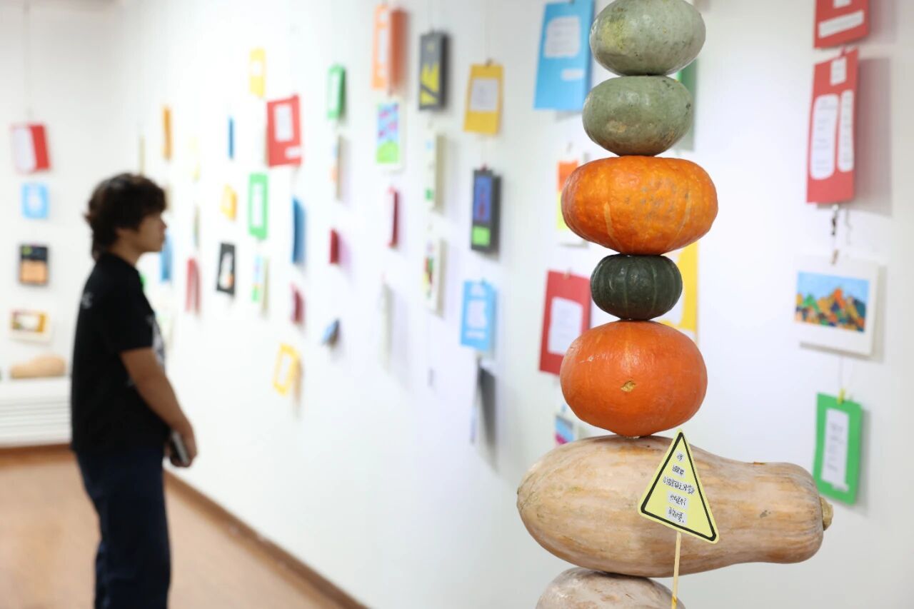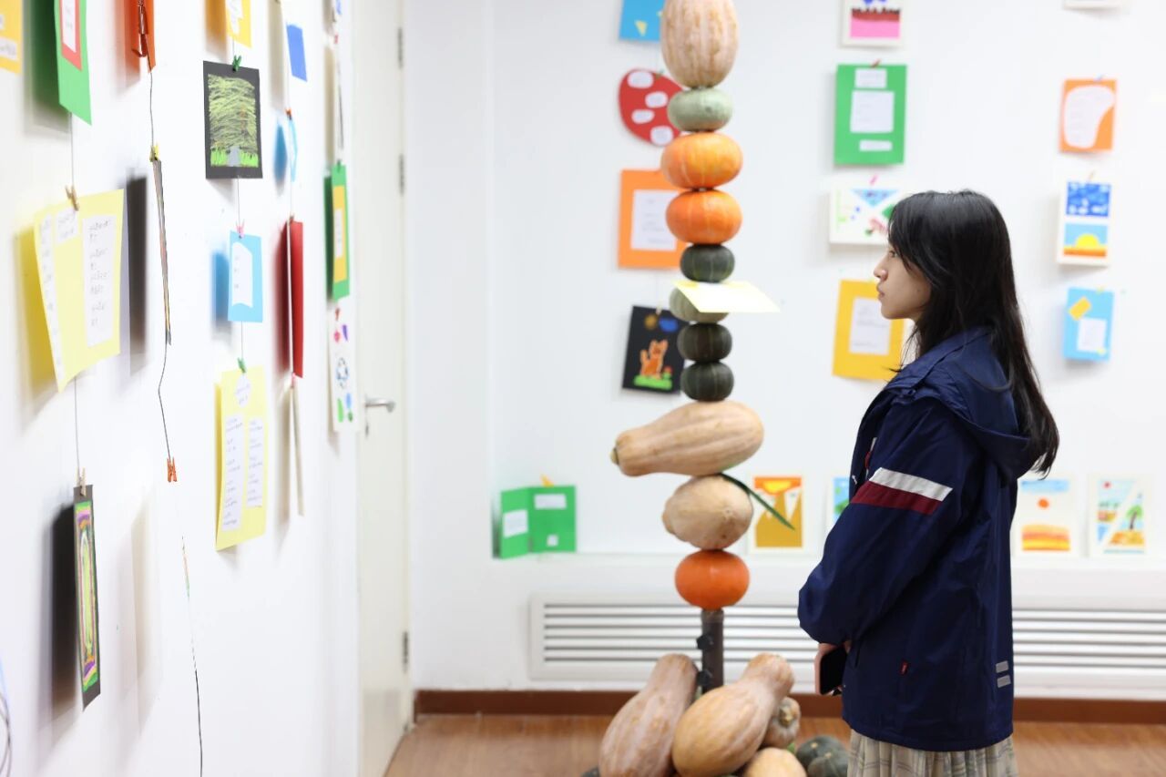 很多稚拙却真诚的小画中,背后有着一个闪闪发光的故事。我希望能还原那段教学相长的时光,让大家看到孩子们笔下的天山雪莲是如何绽放,看到戈壁滩上的胡杨林在他们想象中焕发光彩,也能看到我们天美人如何将专业所学,转化为一节节有趣的美育课堂。布展时,我们刻意保留了部分作品原初的样貌,这是那是那段时光最真实的印记。