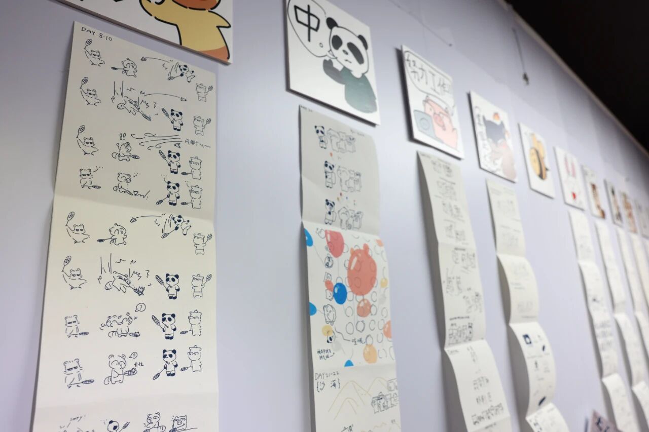 在我的画笔里,我把自己画成一只“浣熊”。初入团队时,我也曾拘谨担忧,怕自己能力不足,拖累大家。但随着日子推移,我收获了来自团队如家人般的支持与温暖。夜里,同伴生病时大家默默的守候;办公室里,一次次热烈的讨论;挂起展布时,大家并肩协作的场景……这些记忆,都一一定格在我的日记里。