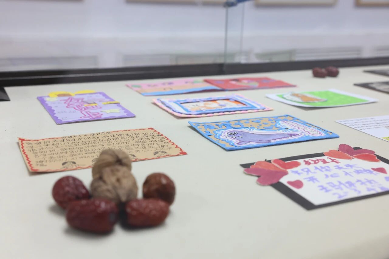 第三板块是我们支教团的中期活动,在策勒县校园文化艺术节上成功举办的“丝路染墨韵 童心颂昆仑”诗画展的再现与复刻。作为美育工作站揭牌后的首次大型活动,展览以昆仑文化为主题,将孩子们的原创诗画用现代视觉语言重新呈现,让传统文化与当代审美巧妙融合,充分展现了策勒孩子们蓬勃的艺术创造力。