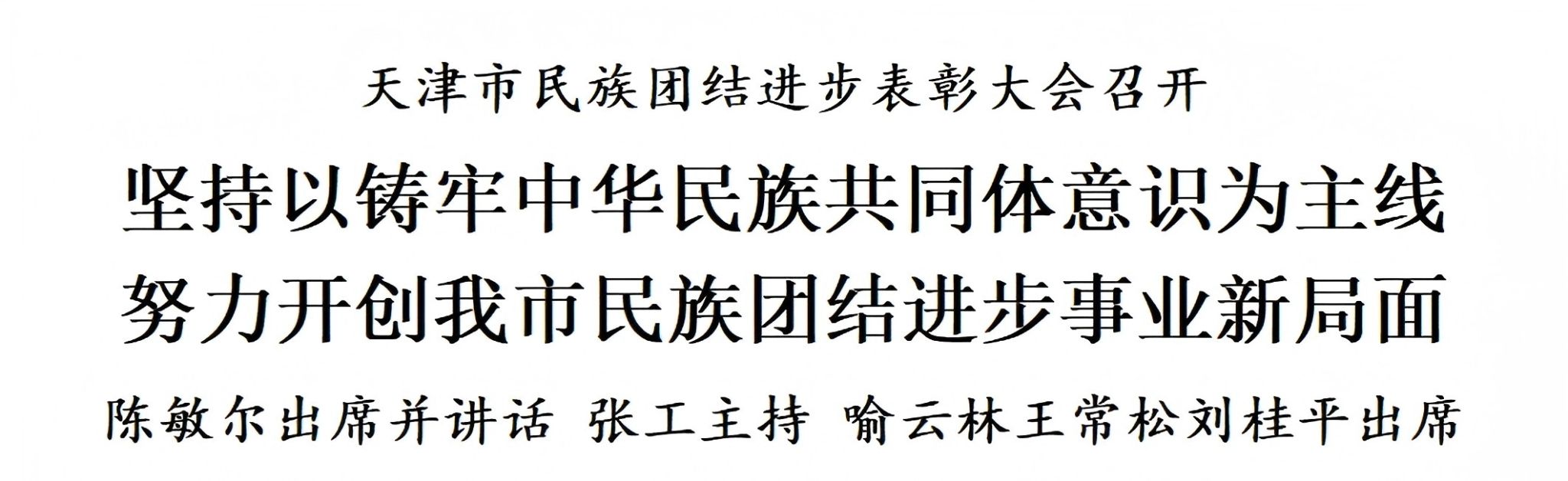 陈敏尔代表市委、市政府向受到表彰的民族团结进步模范集体和模范个人表示热烈祝贺,向全市民族工作战线的同志们表示诚挚问候,向长期以来关心支持天津民族工作的社会各界人士表示衷心感谢。他指出,党的十八大以来,习近平总书记站在实现中华民族伟大复兴的战略高度,围绕新时代民族工作举什么旗、走什么路等重大问题,创造性提出了一系列新思想新观点新论断,形成了习近平总书记关于加强和改进民族工作的重要思想。习近平总书记在全国民族团结进步表彰大会上发表重要讲话,明确提出新时代新征程铸牢中华民族共同体意识、推进中华民族共同体建设,具有很强的政治性、思想性、理论性、指导性,为我们做好新时代民族工作提供了重要遵循。党的二十届四中全会对推进中华民族共同体建设作出部署。我们要一体学习领会、一体贯彻落实,坚持中国特色解决民族问题的正确道路,把铸牢中华民族共同体意识作为新时代党的民族工作主线,深刻把握新时代民族工作的重要任务,确保我市民族工作始终沿着正确的方向前进。