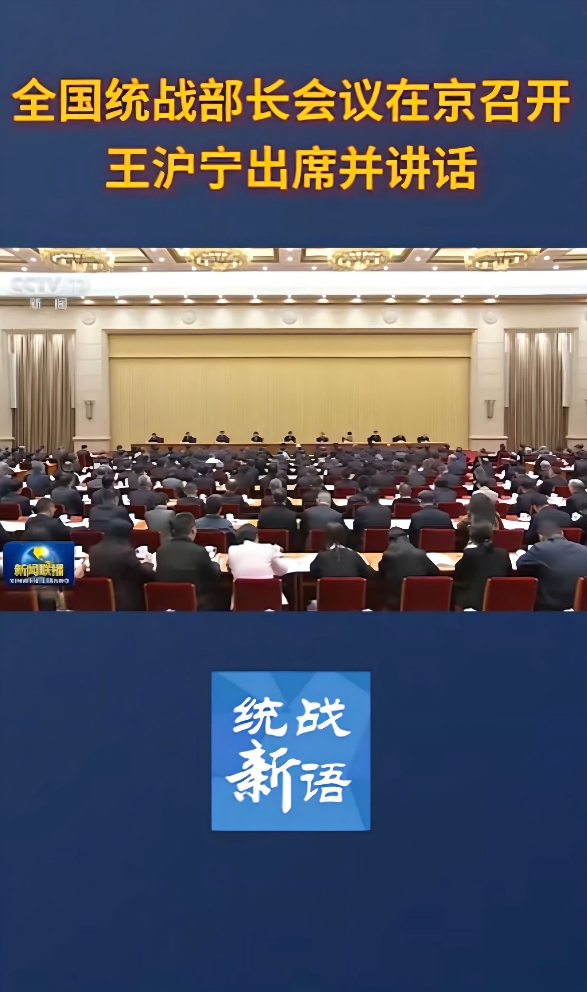 全国统战部长会议28日在京召开。中共中央政治局常委、全国政协主席王沪宁出席并讲话。他表示,要以习近平新时代中国特色社会主义思想为指导,深刻领悟“两个确立”的决定性意义、坚决做到“两个维护”,全面贯彻落实党的二十届四中全会精神,更加坚决有力地贯彻落实党中央关于统战工作的决策部署,为实现“十五五”良好开局、推进中国式现代化广泛凝心聚力。